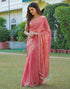 Peach Shimmer Chiffon Stone Work Swarovski saree
