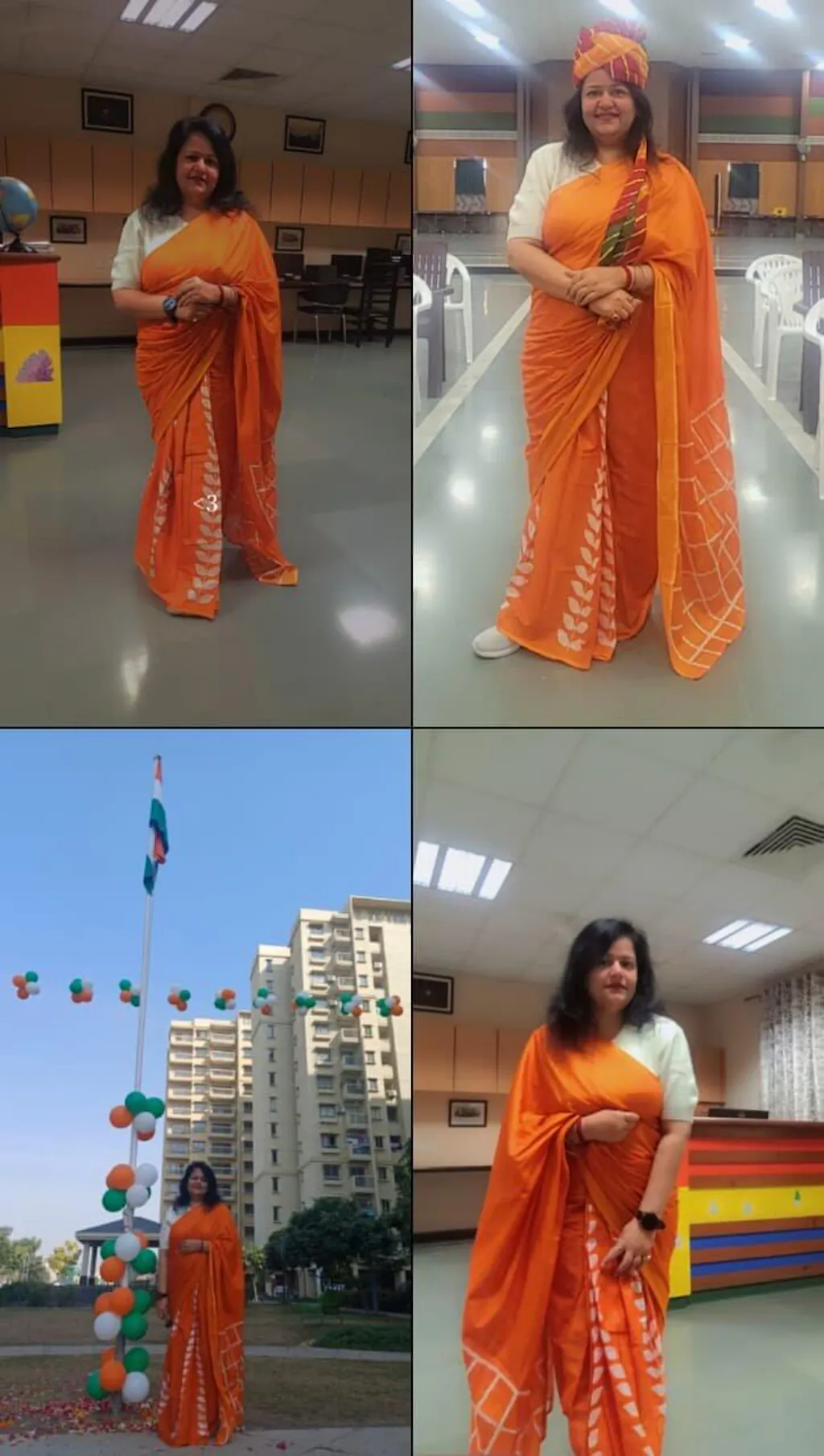 Saree Color : Orange, Off White
