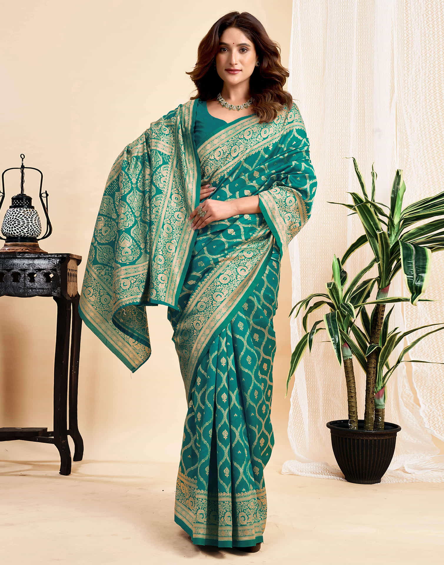 Teal Green Silk Woven Banarasi SareeTeal Green Silk Woven Banarasi Saree- Regular price